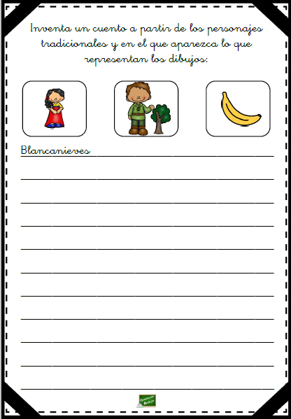 Espero que estéis todos bien. Hoy os traigo una nueva actividad. Se trata de inventar una historia con los tres dibujos o personajes que aparecen. Para descargar la ficha, pinchad aquí abajo. Si lo hacéis, recordad mandarme foto por WhatsApp o correo (lchocarrog02@larioja.edu.es).